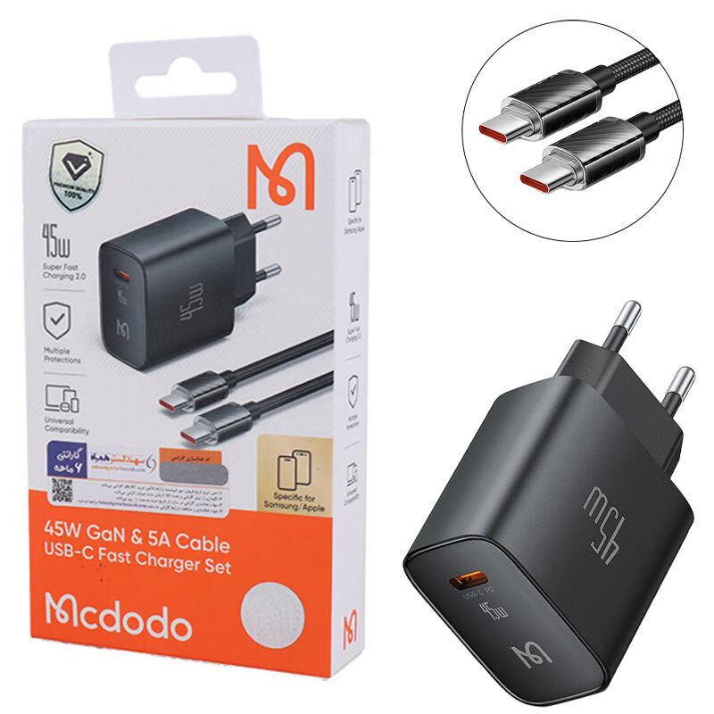 شارژر دیواری 45 وات مک دودو CH-508 GaN PD 3A + کابل تایپ سی