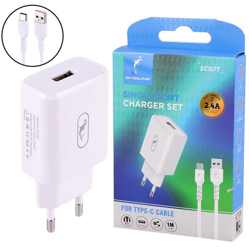 شارژر دیواری 12 وات اسکای دلفین SC07T 2.4A + کابل تایپ سیناموجود