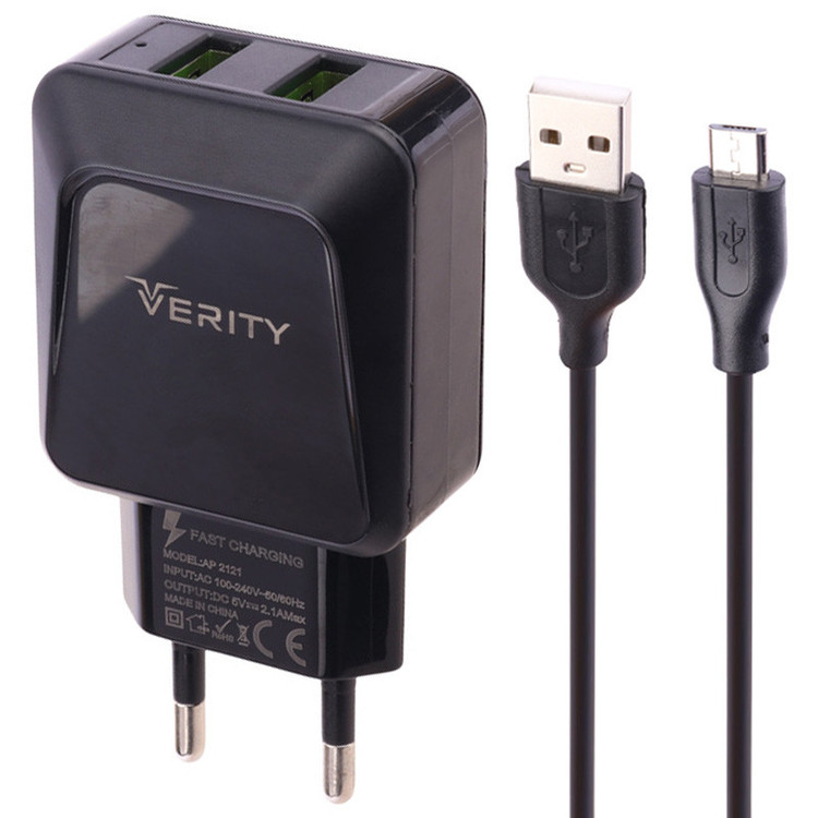 شارژر دیواری Verity AP 2121 2Port 2.1A 10.5W + کابل میکرو یو اس بی