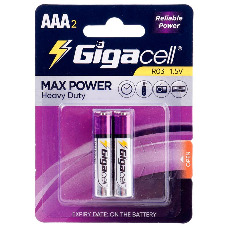 باتری دوتایی نیم قلمی گیگاسل Max Power Heavy Duty R03 (حداقل 12 عدد)