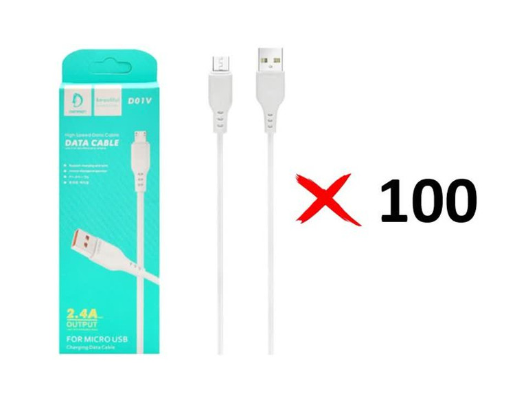 سبد 100 عددی کابل شارژ فست اندروید DENMEN مدل D01V پک دار- سفید