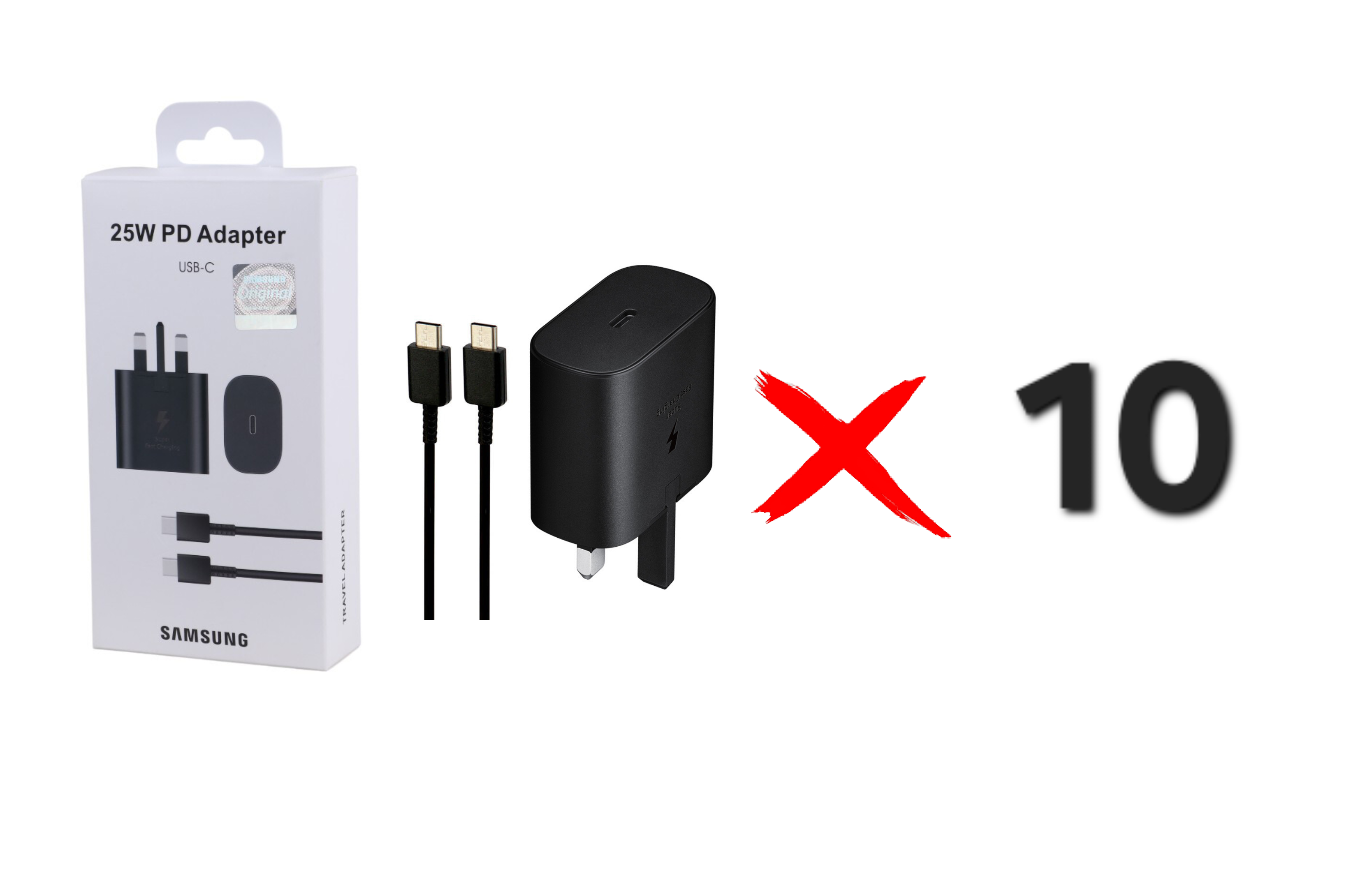 شارژر دیواری 25 وات سامسونگ EP-TA800 PD3.0 + کابل تایپ سی ( سبد ۱۰ عددی)