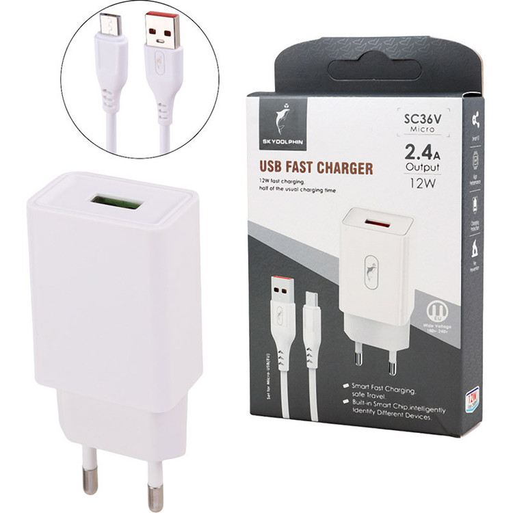 شارژر دیواری 12 وات اسکای دلفین SC36V + کابل میکرو یو اس بی