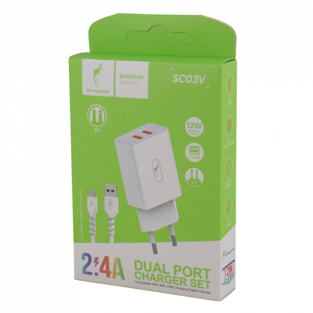 شارژر دیواری 12 وات اسکای دلفین SC03V 2.4A + کابل میکرو یو اس بی
