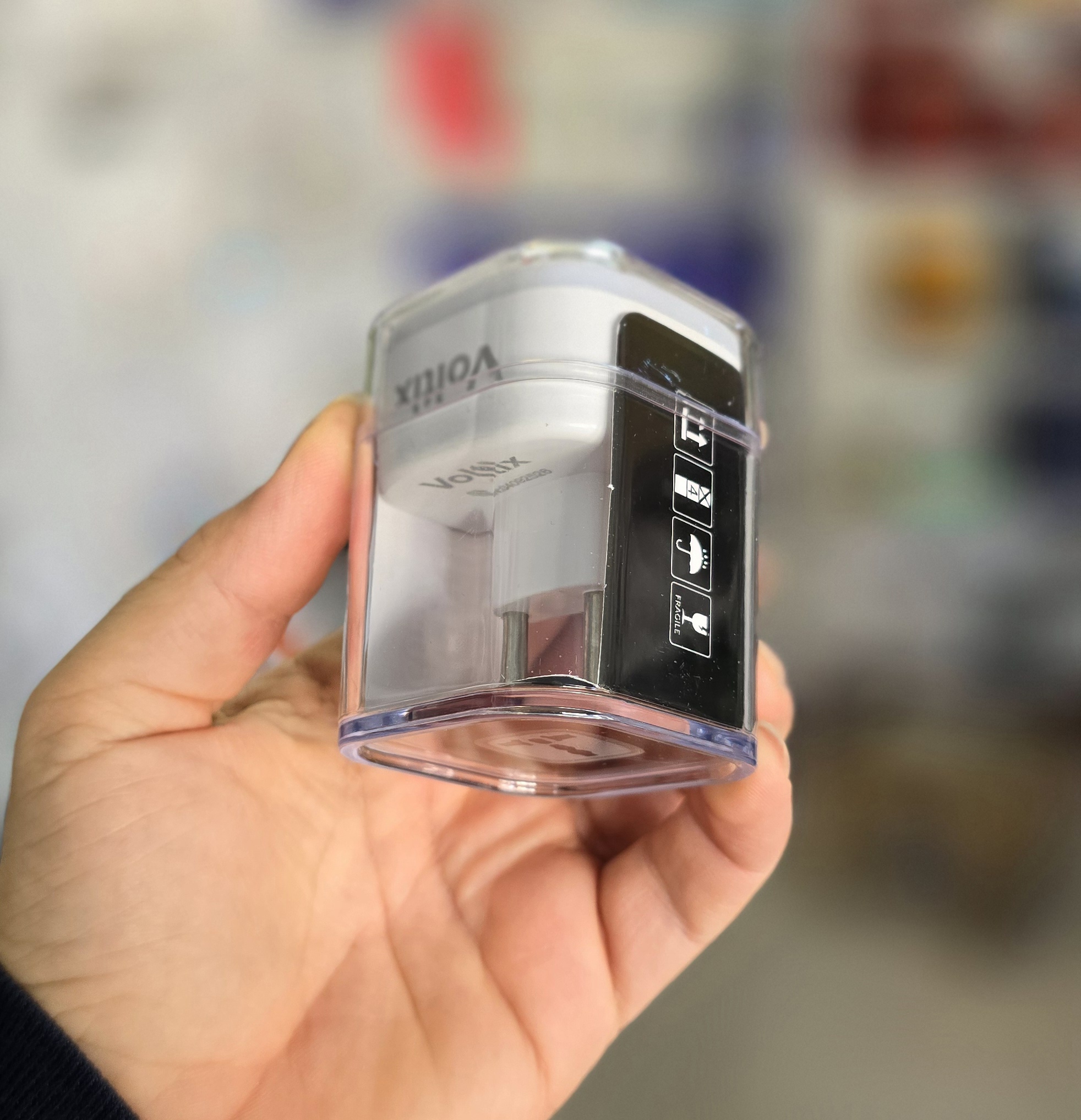 تبدیل ۳ به ۲ چراغ دار Voltix پک شیشه ای سبد 12 عددی