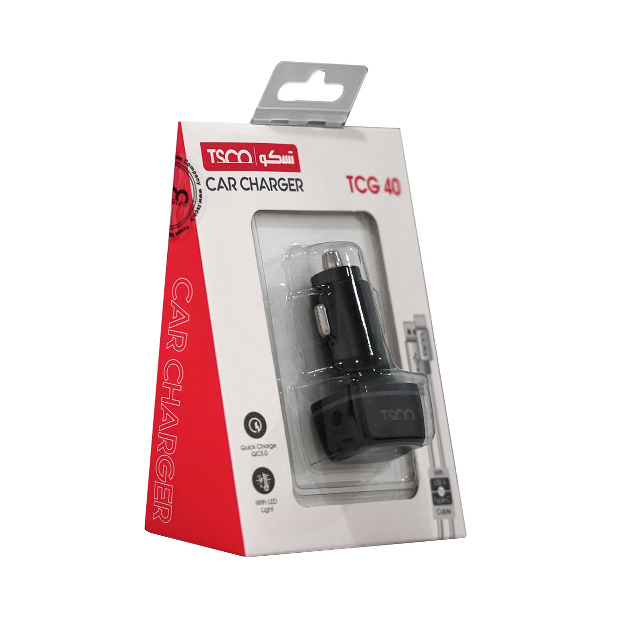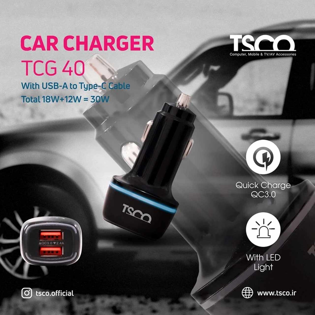 شارژر فندکی 30 وات فست دو پورت TSCO مدل TCG 40 به همراه کابل شارژ Type-C - مشکی